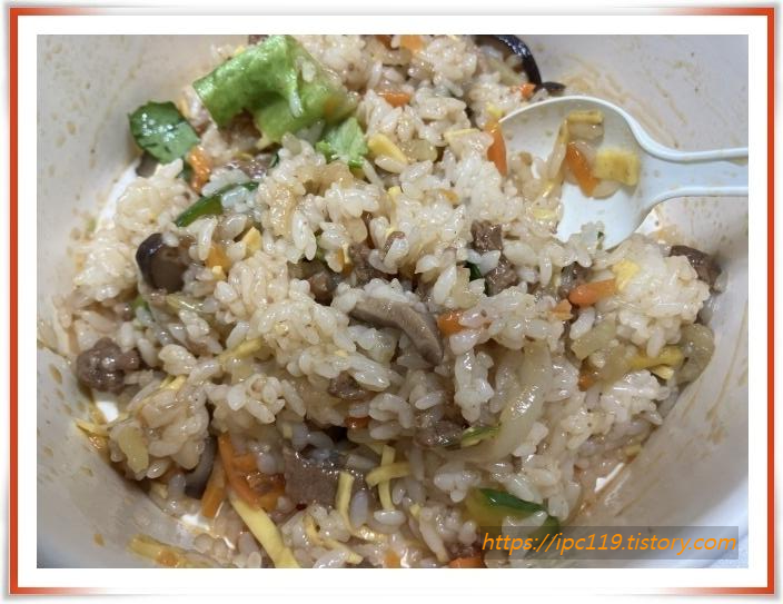 위에 야채류 빼내고 700W 기준 전자레인지에 2분 10초만 돌리면 끝  ~