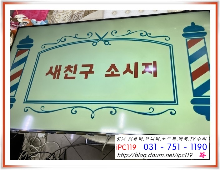 바로 앞 1층에 위치한 TV(컴퓨터) 수리점 iPC119입니다.