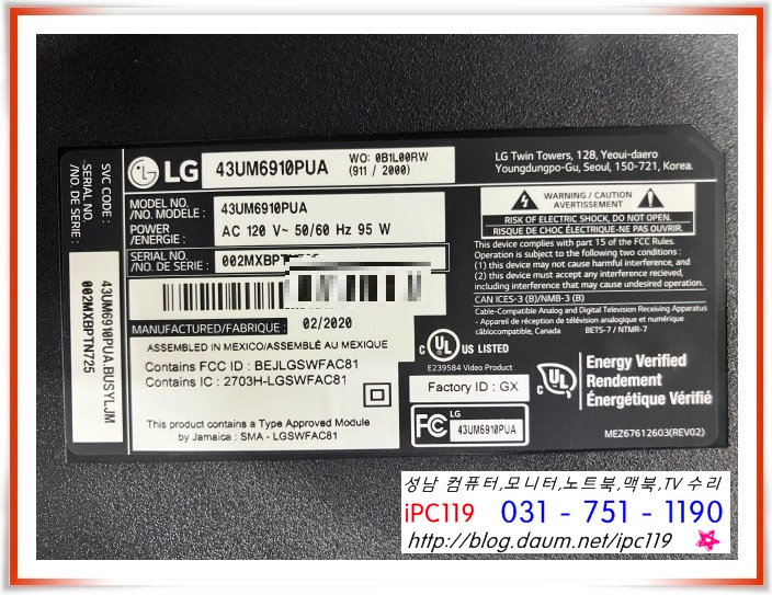 LG전자 직구 제품으로 43UM6910PUA 제품입니다.