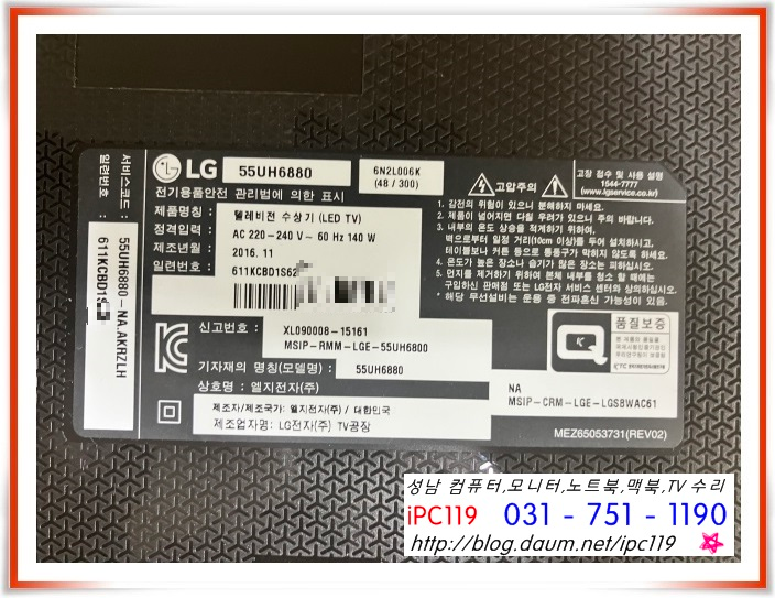 | 성남 TV 수리, LG 55UF6800 화면 반은 안 나오고 반은 깜박이는 증상 수리, 태평역, 송파, 위례 (134) | 2024.01.03 |