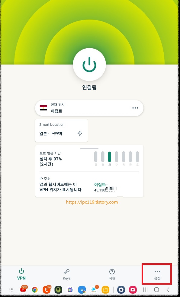 8. VPN 을 이집트로 설정 후
