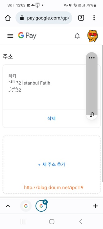 "가족그룹" 가입이 안되면 추가로 "터키"로 주소 설정