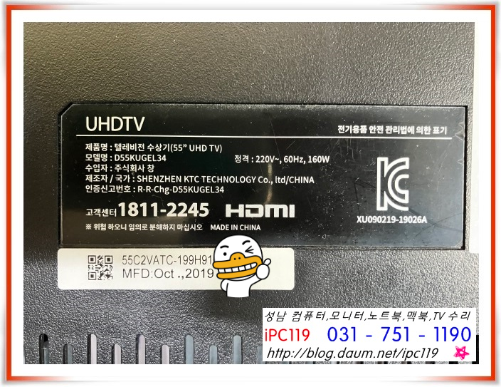 D55KUGEL34 화면무, "소리만 나오고 화면이 안 나와요" 하면서 입고되었습니다.