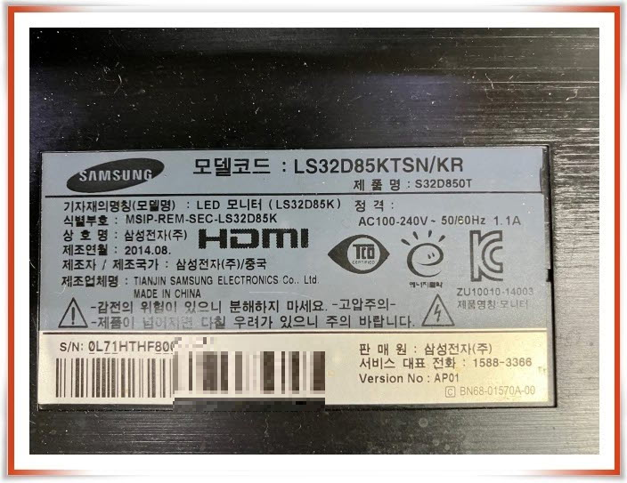 | #2210-001, 삼성 LS32D85K 메인보드 SD850, BN41-02300A (0) | 2022.10.06 |
