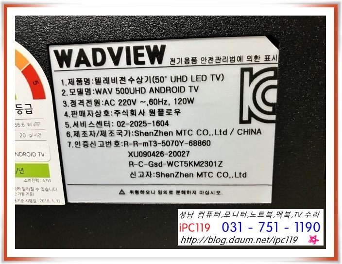 모델명 : 와드뷰 WADVIEW WAV 500UHD ANDROID TV