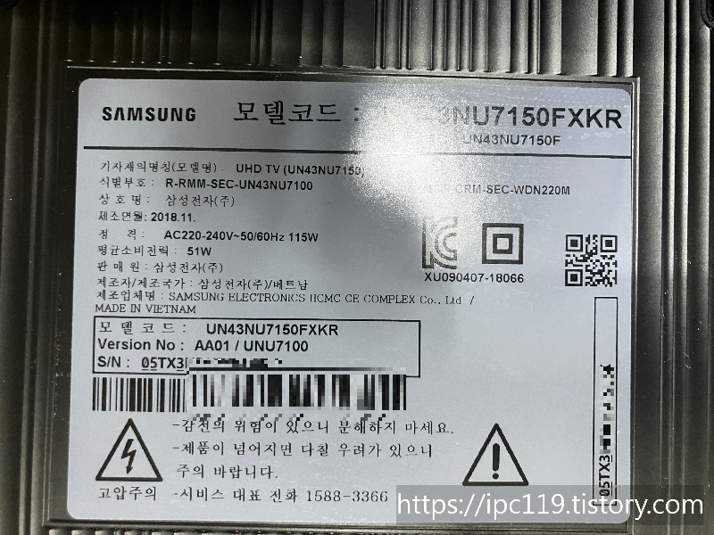 모델명 : UN43NU7150FXKR (UN43NU7100, UN43NU7120)