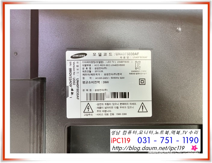 성남 TV 수리, UN40F5030AF TV 화면이 안 나와요, 화면이 흐리게 나와요, 백라이트 수리
